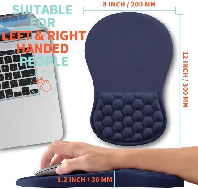 Kuosgm Ergonomic Mouse Pad Wrist Support with Memory Foam Massage Bulge, Carpal Tunnel Pain Relief Mousepad Wrist Rest for Mouse(12x8 inch, Dark Blue)