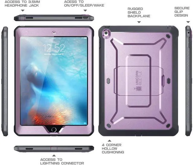 SUPCASE for iPad 9.7" 6th/5th Generation Case with Screen Protector (Unicorn Beetle Pro), [Built-in Stand] Heavy Duty Full Body Shockproof Rugged Protective Case for iPad 9.7 Inch 2018/2017, Purple