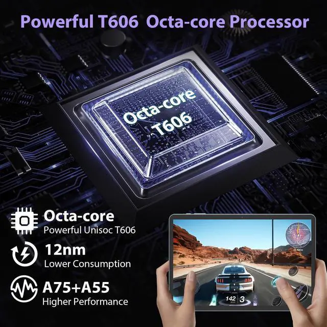 Octa-core Processors + Smart LensThis tablet with keyboard is equipped with powerful Unisoc T606 processors, which significantly enhances its operational smoothness and multitasking capabilities. Smart Lens helps you with text recognition and translation, as well as object recognition