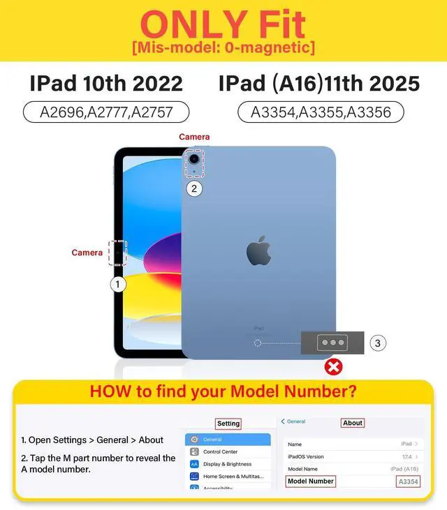 Perfect Fit: iPad (A16)11th/10th Gen Onlyfor: iPad (A16)11th Gen 11-inch (2025): Models A3354/A3355/A3356 and iPad 10th Generation 10.9-inch (2022): Models A2696/A2757/A2777. Confirm back "A" number before choosing this case to protect your investment.
