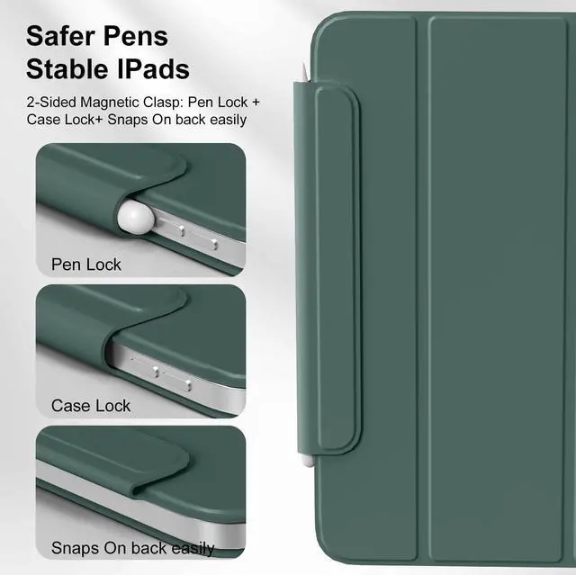 JKSML Case for iPad (A16) 11th/10th Gen with Pencil Holder, Ultra-Slim & Light, Strong Magnetic Attachment, Hard Anti-Bend Folio Cover, Trifold Stand for iPad 10.9" (2022)/ 11" (2025)- Green