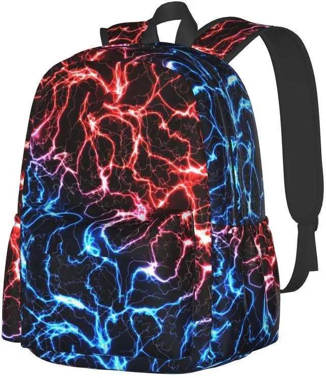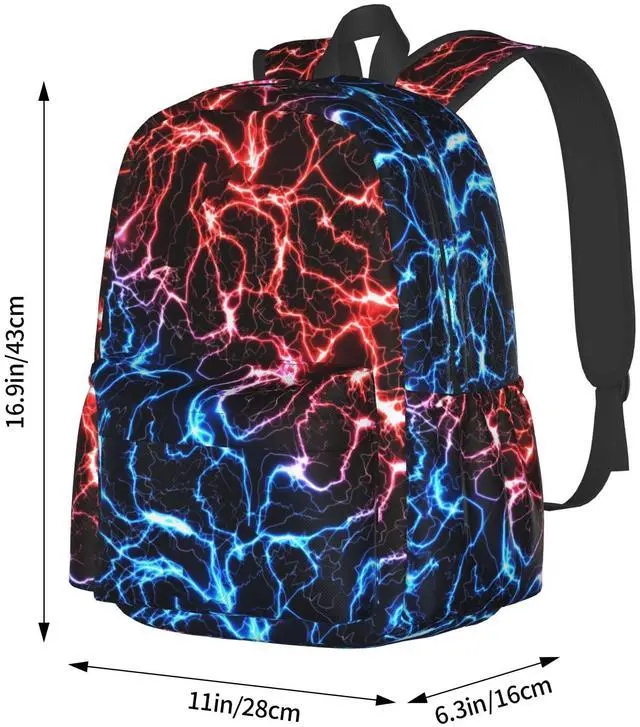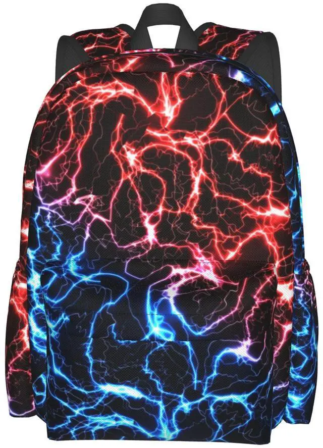 Backpack for Boys Girls Men Women, 17 Large Capacity Laptop Backpack Lightweight Waterproof Daypack Bookbag for Teenager Elementary Middle College School Work Travel Sports (Blue Red Lightning)