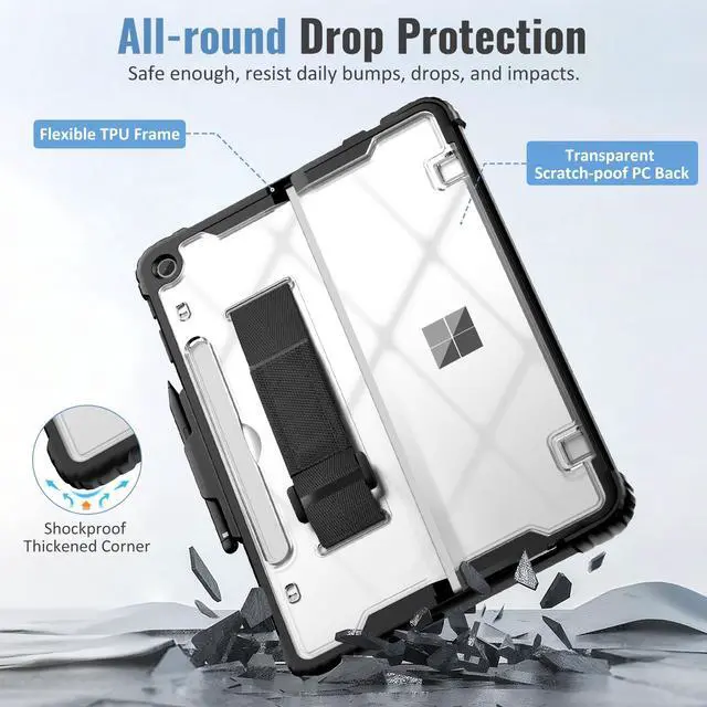 Excellent Protection: This Surface Pro 12 case is made of shock-absorbing soft TPU and clear sturdy polycarbonate for back shell. This design provides great protection for your tablet against shocks, drops, and impacts. The cutouts of the case can match your tablet. Full access to all features and controls without removing the case