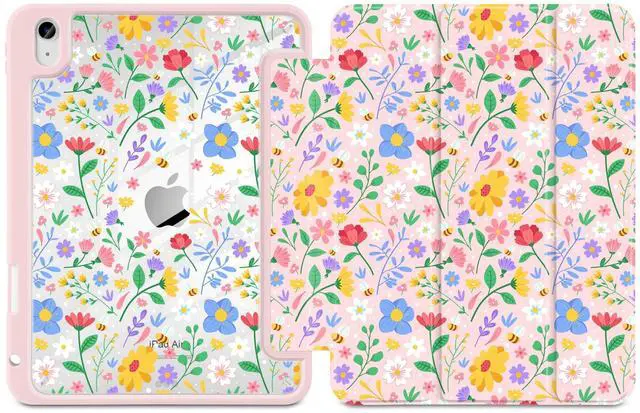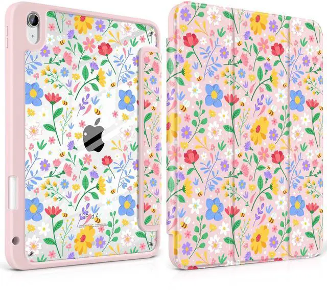 MEEgoodo Case for iPad Air 11 inch M3 2025 / M2 2024, for iPad Air 5th / 4th Generation Case 10.9 inch 2022/2020, Tablet Cover with Acrylic Transparent Back Shell, Flat Spring Floral