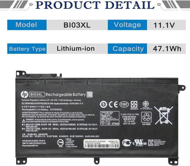 Part Number: BI03XL ON03XL 0N03XL HSTNN-UB6W HSTNN-LB7P TPN-W118 843537-421 843537-541 915230-541 844203-850 844203-855 915486-855 Compatible with