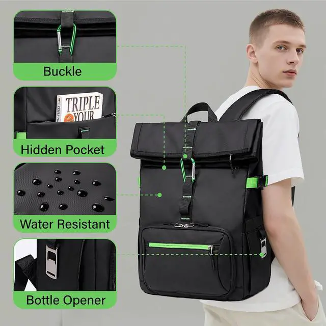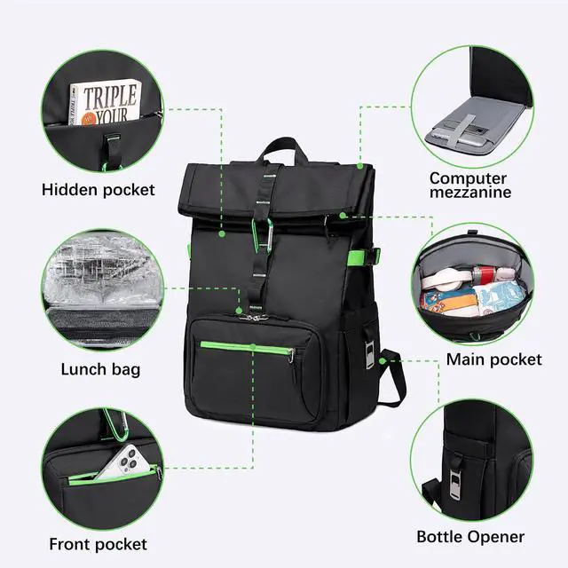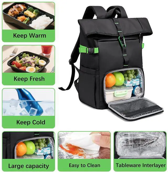 Lunch Backpack with Laptop Compartment: The padded laptop compartment designed specifically fits 15.6 laptops with EVA shockproof padding and soft velvet lining. A hidden zipper + TSA-friendly design lets you pass airport security without removing your laptop, ideal work laptop backpack for men for business trips or college backpack for campus commutes