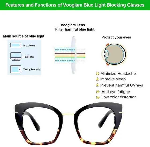 Protect Your EyesUsing blue light blocking lens, reflect and filter UV, blue light, protect your eyes and reduce eye fatigue, dry and headache during use computer or phone, enjoy a better sleep.