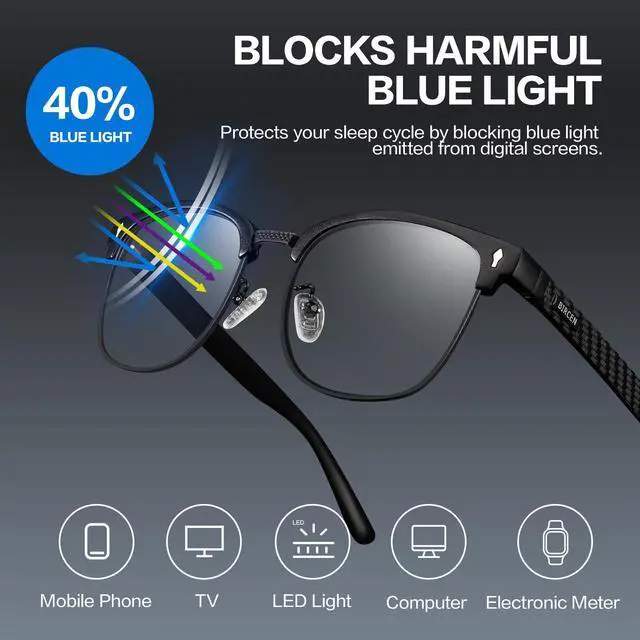 Bircen blue light glasses filter up to 45% of harmful blue light while keep exceptional clarity. Featuring virtually clear lenses with minimal color distortion, these glasses strike the perfect balance between eye protection and visual fidelity. They effectively reduce exposure to damaging blue light from digital screens without altering your color perception. Designed for modern lifestyles, these blue glasses are ideal for computer work, gaming, etc.