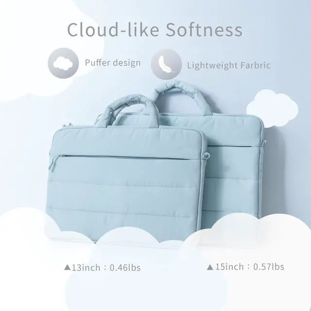 Pillow-Soft Quilted Texture Designed with a puffy cloud-style exterior, this 15-inch laptop sleeve offers both standout aesthetics and extra protective padding.