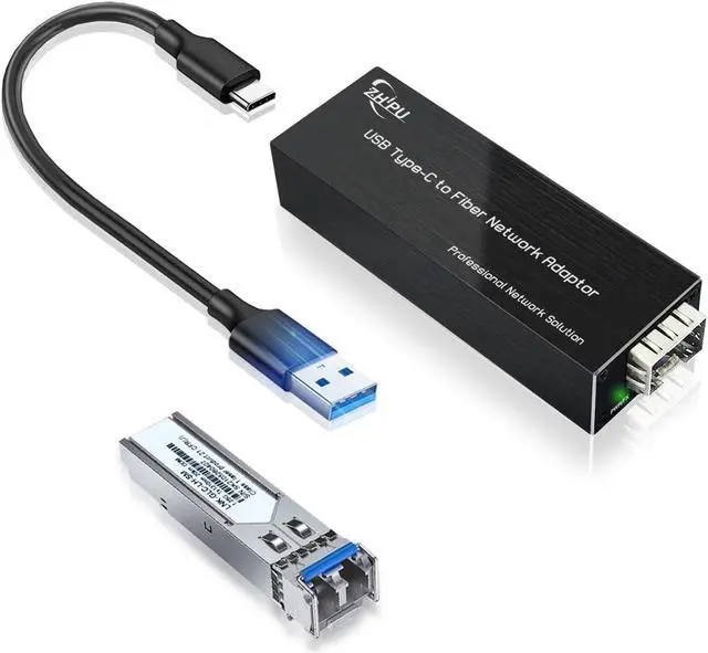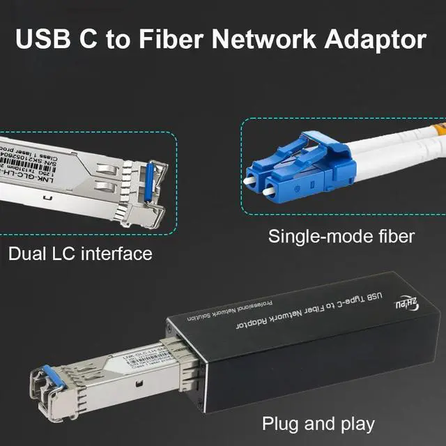 Zhpuostd USB C to Fiber Network Adaptor, USB 3.0 Type C 5V to 100/1000base-X SFP Gigabit Network Card, Equipped with a 1.25G Single-Mode Dual-Fiber Module, 20km Transmission