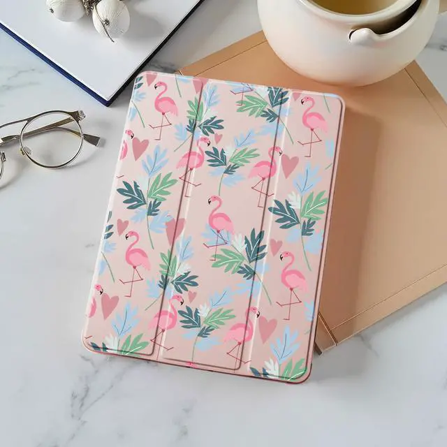 Idocolors Cute Flamingo Pad Case for iPad 10th/11th Generation, Clear TPU Stand Back Cover with Pencil Holder, for 10.9 Inch iPad 2022/2025 Pink Auto Wake/Sleep Adjustable Protective Case