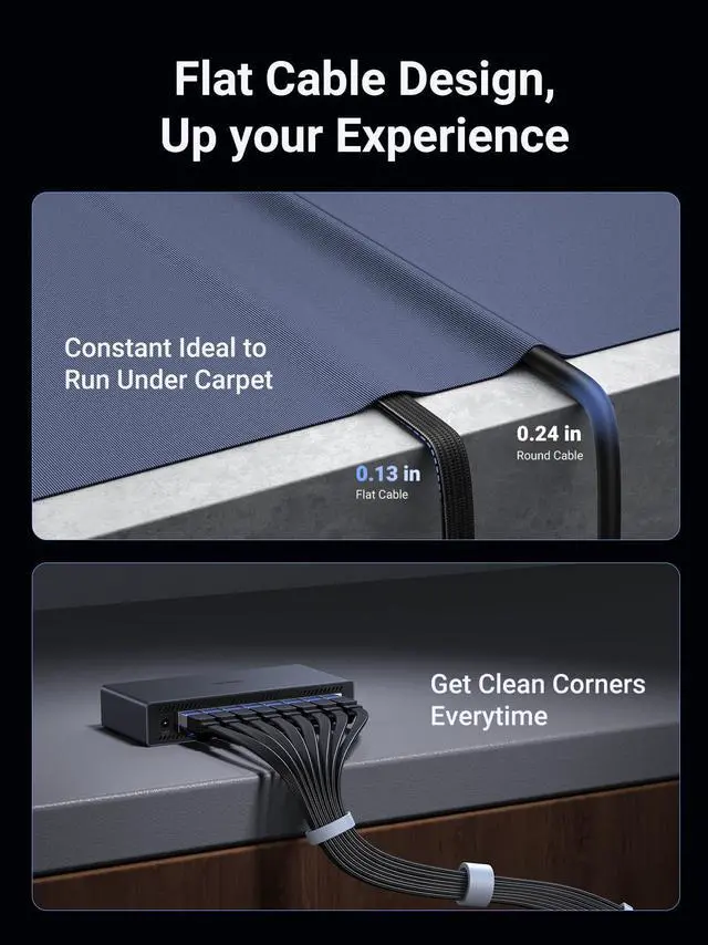 Flexible Flat Design: UGREEN Cat 8 Flat Ethernet cable adopts a unique flat and thin design, which allows for a cleaner and safer installation. Whether you want to install it under the door, through the window, or hidden under the carpet, it can be done very easily. It's very suitable for indoor wiring.