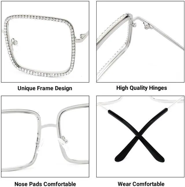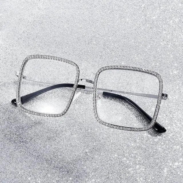 [Frame Design]Golden square frame adorned with colorful rhinestone, radiantly dazzling, suitable for both party events and daily wear, exuding abundant style