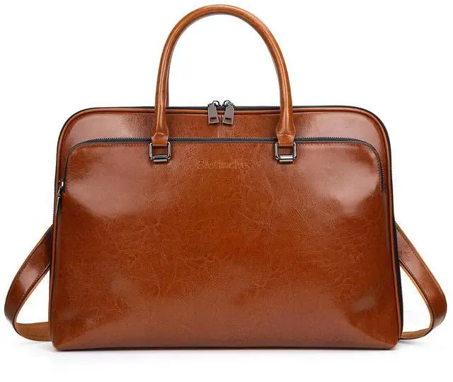 Blofinche Genuine Leather laptop Briefcase: Messenger shoulder bag 15 16 inch men macbook case women work satchel designer handbag Brown