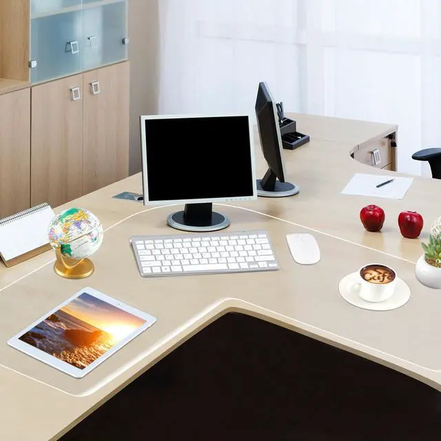 This clear corner desk mat helps shield your office furniture from potential wear and tear, extending its lifespan.