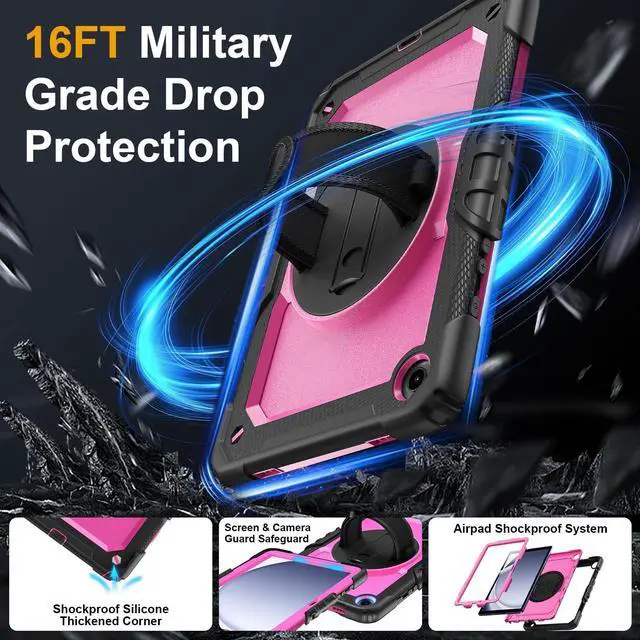 Case for Samsung Galaxy Tab A9+/A9 Plus 11 Inch 2023(SM-X210/X216/X218), Ubearkk Full-Body Drop Protection Case with Screen Protector, 360° Rotating Stand and Hand/Shoulder Strap, Pink
