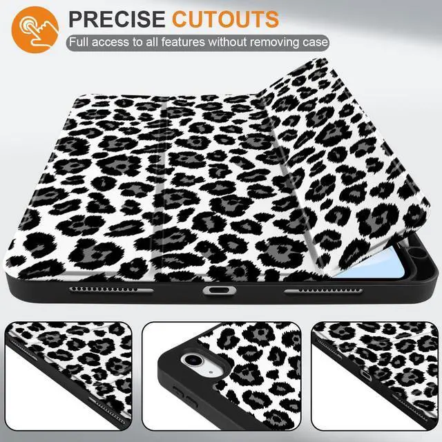 MEEgoodo Case for iPad A16 11th Generation 11 inch 2025/iPad 10th Generation 10.9 inch 2022,Tablet Cover with Trifold Stand + Pencil Holder + Auto Wake/Sleep + Soft TPU Back Cover,Snow Leopard Texture