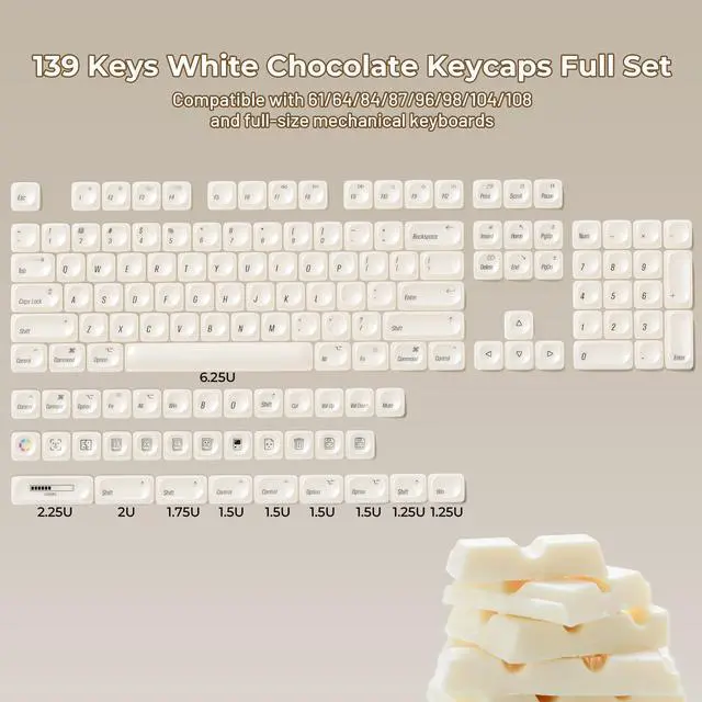XVX White Keycaps, MOA Profile Keycap Set, Minimalist White Mac Style, Custom Cute Ceramic-Textured Keycaps for MX Switches Mechanical Keyboard-White Chocolate