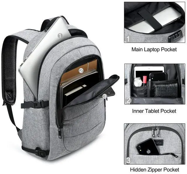 Laptop Backpack for unisex, Anti Theft Water Resistant Travel Work Backpack with USB Charging and Lock 15.6 Inch Computer Bag, Grey