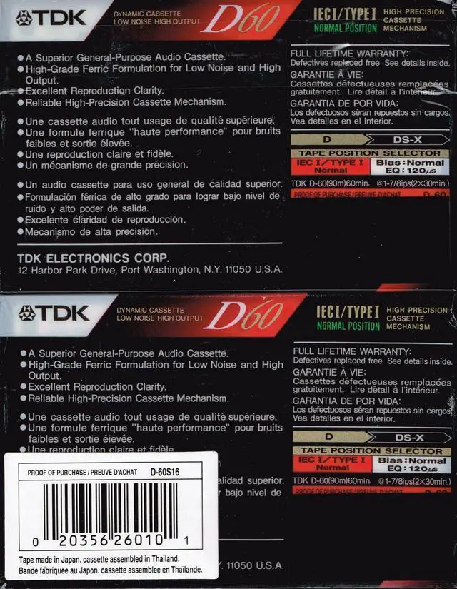 • TDK D60 ICE I/Type I Normal Position High Output Audio Cassette Tape