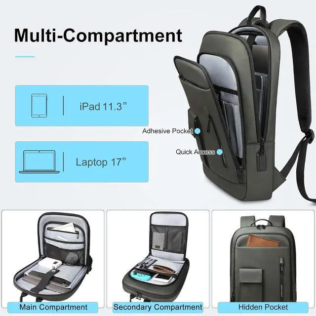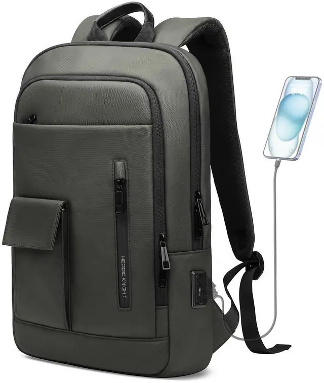 Original Design by the brand Heroic KnightThe Slim Laptop Backpack is a new backpack for men and women. This laptop backpacks has various practical compartments and pockets: main pocket*1, front pocket*1, padded sleeve for laptop *2, mesh pocket *4, normal pocket*3, zipper pocket*3, pocket for pen*3, card pocket*1. You can store your essentials in the different pockets to ensure your belongings are organized and easier to find.(The backpack features dedicated laptop and ipad compartment)