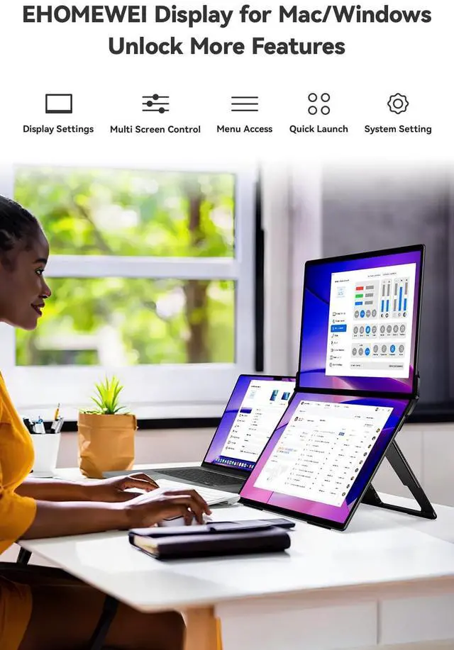 Ehomewei Self-Developed Software: With the EHOMEWEI DISPLAY software, you can easily manage color, brightness, resolution, touch, and stylus settingsjust by tapping the screen or moving your mouse on Windows or macOS.
