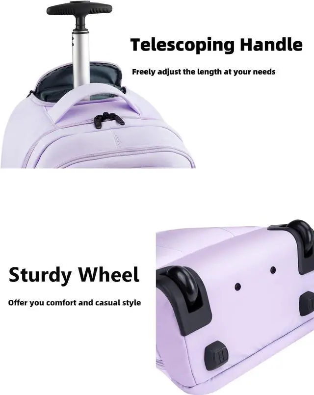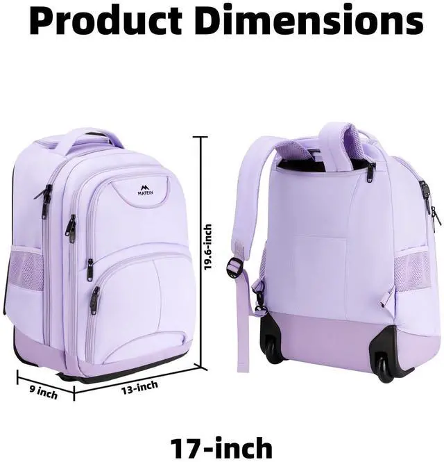 MATEIN Rolling Backpack for Women, 17 Inch Travel Laptop Backpacks with Wheels, Waterproof Large Roller Carry On Luggage Wheeled, Trolley Overnight Suitcase Business Computer Bag, Purple