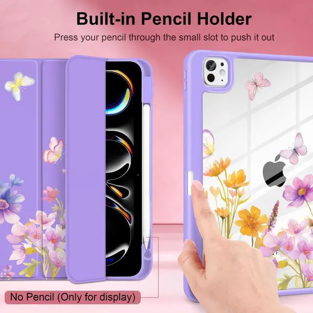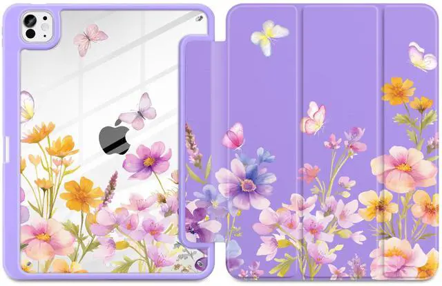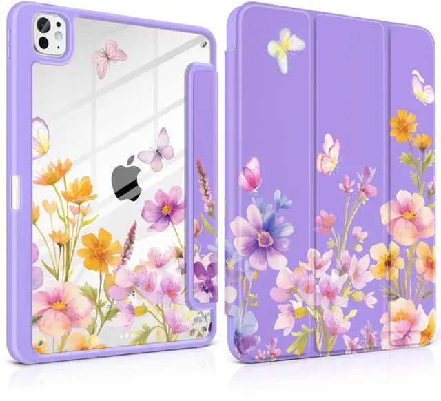 Loyrina Case for iPad Pro 13 inch (M5) 2025 (M4) 2024 Release Slim Lightweight Cute Purple Cover with Clear Back TPU Edge Pencil Holder Trifold Stand, Watercolor Flower