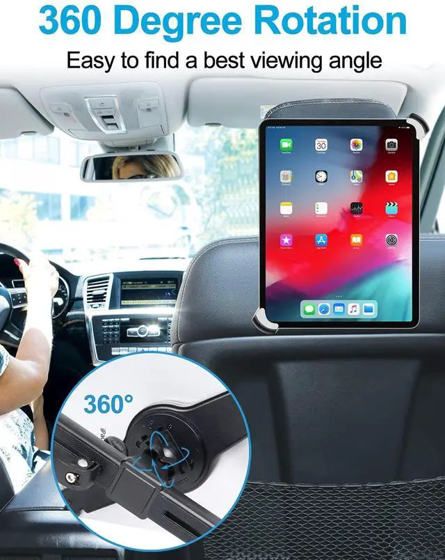 woleyi Car Headrest Large Tablet Mount, Heavy Duty Ultra Stable Car Back Seat Tablet Holder, Compatible iPad Pro 13/Air, Samsung Galaxy Tabs, Surface Pro/Go, Fire HD and More 9.5 - 14.5" Tablets