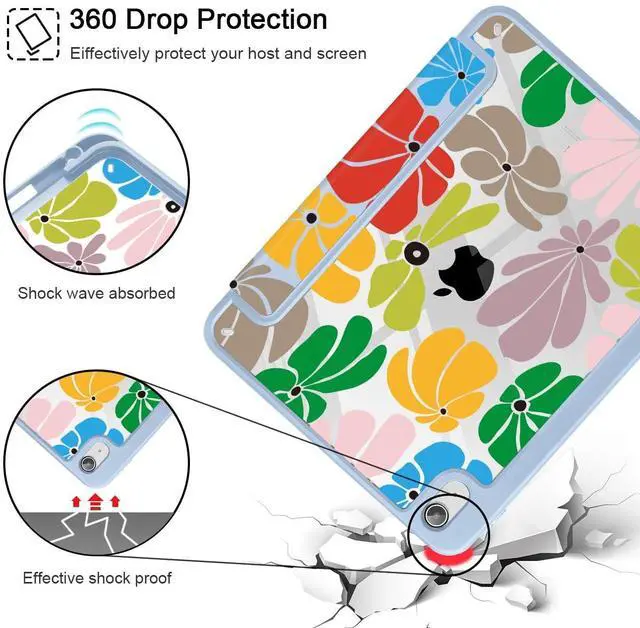 May Chen for iPad (A16) 11th Generation Case 11 Inch 2025, iPad 10th Gen Case 2022 10.9 inch, Built-in Pencil Holder with Shockproof Cover Clear Back Shell Auto Wake/Sleep, Flower
