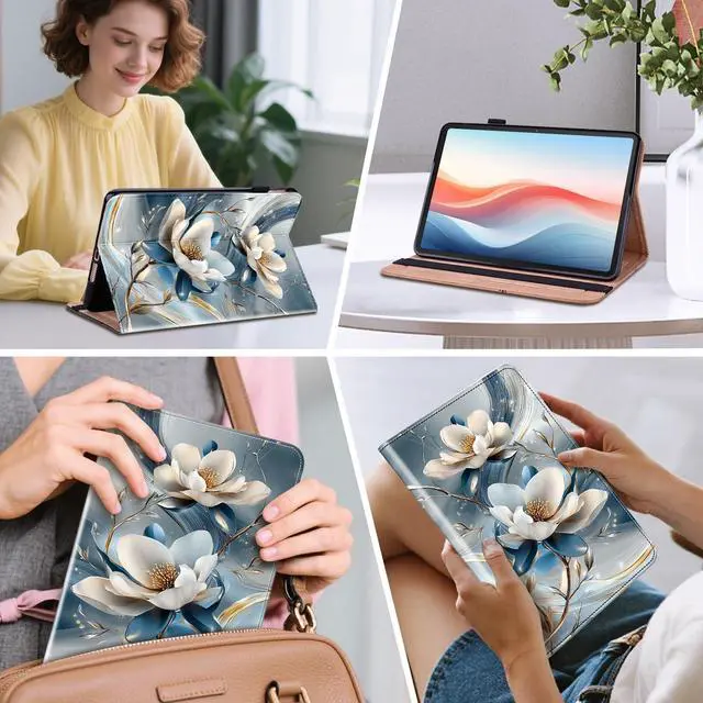 [Multi-angle standing] The tablet case benefits from one-handed convenience with an adjustable angle that acts like a stabilizing stand, freeing up your hands while watching, reading or writing, and is a good choice for relieving neck strain.