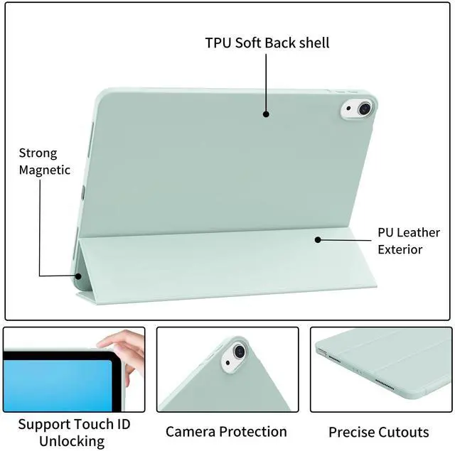& Lightweight: This iPad air 5th generation case is made of PU leather, soft microfiber fabric, and durable TPU back shell, which is ultra slim, lightweight, and takes less space in your small backpack. It doesn't add many sizes to the tablet, you can carry it while traveling ^^