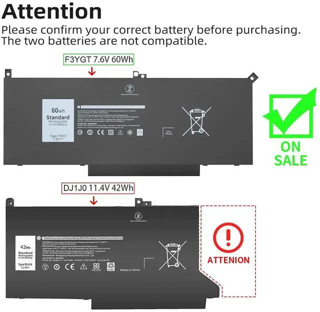 Compatible Models: F3YGT Battery Compatible with Dell Latitude 12 7000 7280 7290, Latitude 13 7000 7380 7390, P28S P28S001, Latitude 14 7000 7480 7490 Series, P73G P73G002, Latitude E7280 E7290 E7380 E7390 E7480 E7490 Series. NOT fit for Latitude 7390 2-in-1 Series ^^