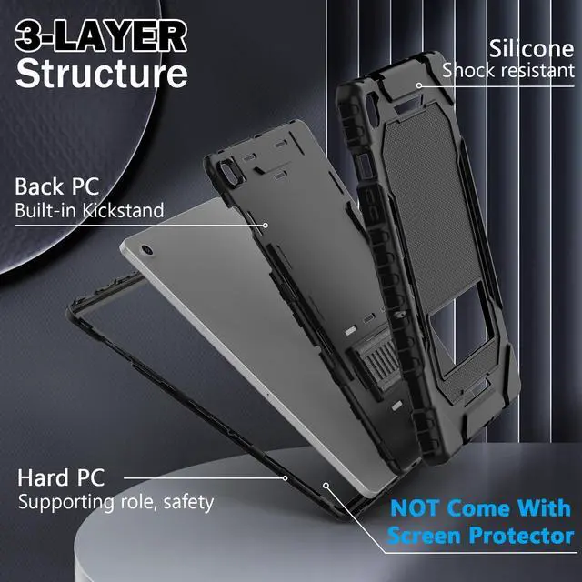 (ATTENTION: NO Screen Protector Included) ^^ Shockproof Rugged Design - Samsung Galaxy A9 Plus Case made of durable Hard PC+Silicone, 3-layer Full Body protection structure, provide a perfect protection, protects your Samsung Tablet A9+ from scratches and accidental drops, bumps and impacts. ^^ Functional Kickstand - Cover built with convenient kickstand that slides out for typing, gaming or video watching at home or on the go. Built from durable plastic material exterior - Snug fit, hybrid shockproof and protection. ^^ Precise Cutouts It's easy to access all buttons, speakers, cameras and charging port, all the ports are where they should be. It's also a very thoughtful and practical perfect gift for kids, boys, girls, teens, Big boys, familys and friends. ^^ 24 Hours Customer Services We provide 24h customer service for this Galaxy A9+ Tablet Case. If you have any questions of installation and usage, please feel free to tell us by email, we are always here to help.