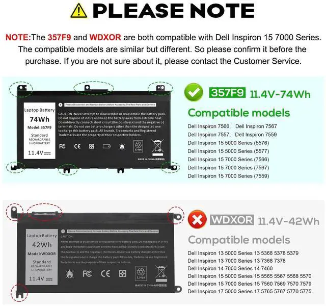 Cell: 3Cells; 100% brand new from manufacture. Grade A cells ensure fast charges and low power consumption. ^^ Compatible Part Number357F9 0357F9 0GFJ6 00GFJ6 71JF4 071JF4 P57F P57F003 P65F P65F001. ^^ Compatible Laptop ModelsFor dell Inspiron 15 7000 Gaming series 15 7559 7557 7567 7566 7759 15-7559 15-7557 15-7567 15-7566, Inspiron 15 5000 Series 15 5576 5577 15-5576 15-5577 laptop.