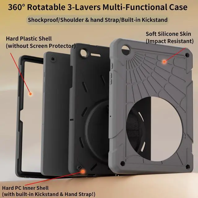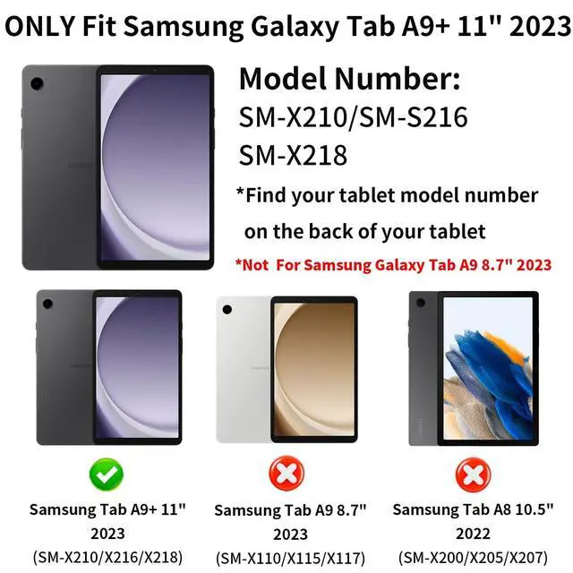 CompatibilityOnly for Samsung Galaxy Tab A9+ Plus Case 11 Inch 2023 (SM-X210/X216/X218). Main Features3 in 1 CaseCombined with hard PC front & back inner cover, soft silicone outer cover. 360Rotatable Kickstand & Hand StrapA unique feature of this Galaxy Tab A9 Plus Case 11 Inch is its kickstand that supports your tablet in a stand position through multiple angles, and a 360-degree swivel hand strap which adds extra comfort for holding with pencil holder. Whether it is a child or an adult, you can adjust the tightness of the strap so that users are comfortable using their own tablet.