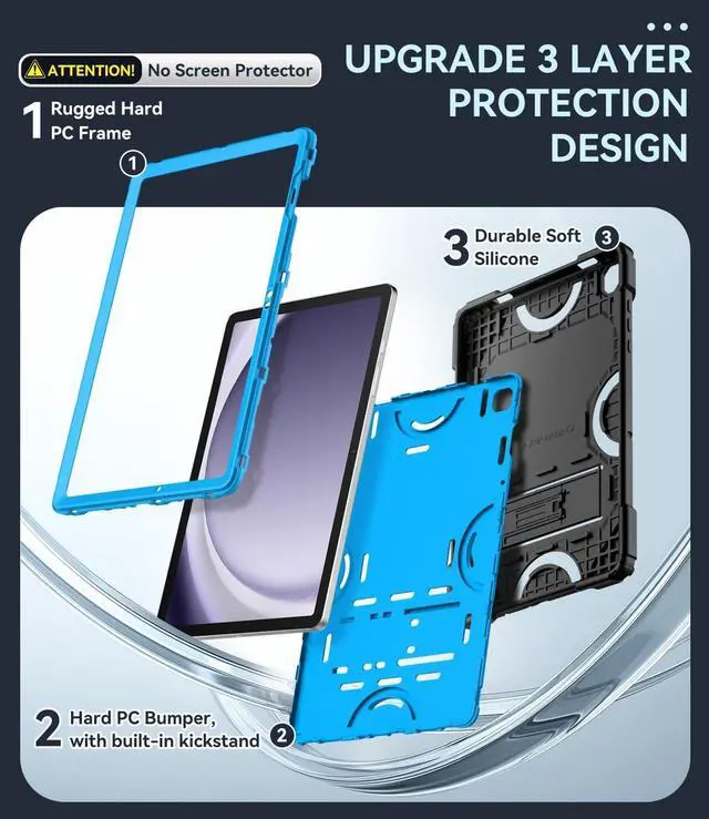 Drop Protection: Case for 11 inch Samsung Galaxy Tab A11 Plus case/ Galaxy Tab A9 Plus case kids features upgraded 3-IN-1 shock-absorbing protective structure, rugged hard PC and durable silicone outer layer to fully protect your tablet from accidental drops, bumps, shocks, and scratches. Screen Protector NOT included ^^