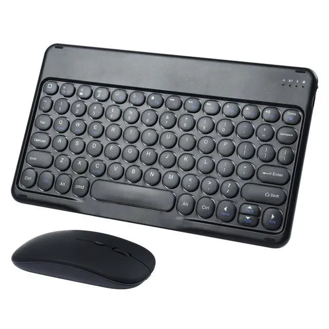 Simply click any key to wake them up and continue using them. The Bluetooth mouse is powered by 2*AAA batteries (not included). ^^ EXCELLENT COMPATIBILITYThis is a set of wireless Bluetooth mice and keyboards that are compatible with a range of devices, including Android, Windows, Mac OS, and iOS systems. They connect to Bluetooth-enabled devices, such as tablets, iPads, iPhones, Samsung phones, and Surface tablets, making them versatile for various users. ^^ QUIET AND COMFORTABLEThe silent keyboard features keys with a scissor structure and round keycaps, offering a comfortable and pleasant typing experience.