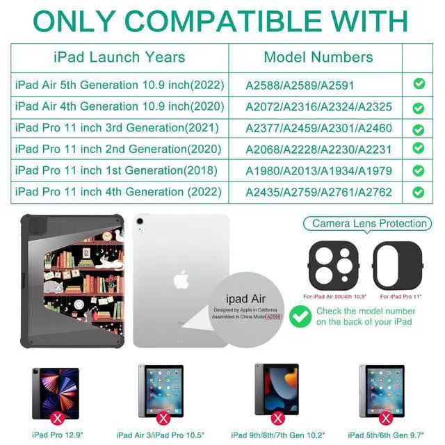 Case 2018(Model: A1980/A2013/A1934/A1979)360 Rotating iPad Air 10.9 CaseUnique 360 degrees of flexible to rotate and built-in 2 grooves, which brings you into the ultimate using experience in multiple landscape and portrait viewing stand angles. Smart Auto Sleep/ WakeMagnetic iPad Cover instantly wakes up iPad when opened, and makes it go to sleep once closed (extend battery life). Built-in Pencil HolderConvenient for you to carry your iPad pencil without losing, you could use your pencil anytime and anywhere. Touch Wireless ChargingSupport 2nd Gen Pencil be charged and paired. Full-Around ProtectionThis 10.9 /11 inch ipad case sports a unique and individual design made from premium material. Offer full protection to the edge of your iPad. Effectively keeps iPad away from damages of dropping, bumps and shocks. Precise CutoutsThe perfectly aligned cutouts of the charging ports, camera and speakers give full access. About USThe Cutebricase is a team that focuses on original design. We have designers with creative fashion ideas and an excellent service team dedicated to providing customers with beautiful and practical products.