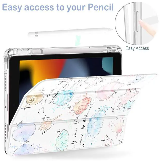 Number: A2197/A2200/A2198). Not compatible with any other devices. Please confirm the model number before purchasing. ProtectionOur special material provides you Soft Touching Texture. PU leather with Clear Transparent back surrounded by Soft TPU cover are lightweight and durable to protect your device from scratches and shocks while showing your iPad color. Tri-Fold Standing & Auto sleep/wakeThe Tri-Fold front provides you two standing positions for viewing or typing needs; Front Cover can automatically puts your tablet sleep/wake when the lid turn on/off. Pencil HolderInner pencil holder provides an Easy Access and Secure place for your 1st generation Pencil.