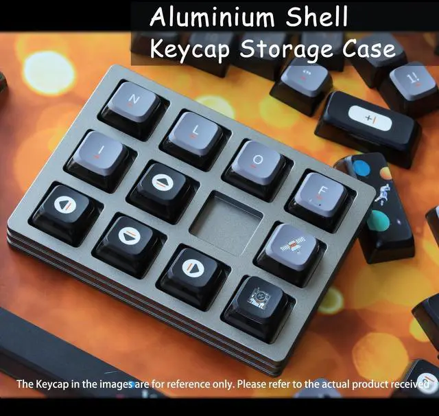 Aluminum Display Plate for Keycaps with 12-Key Slots, designed for storing your keycaps, making organization easy and highly practical. ^^ Keycap Collection Storage Box has Wide Compatibility, Compatible with most mechanical keyboard gaming keycaps. ^^ CNC-Machined Aluminum, convenient, and reusable. ^^ Keycap Display Holder, Multiple containers can be stacked together, saving space and keeping things tidy. ^^ Available in multiple colors, suitable for various setups and scenes.