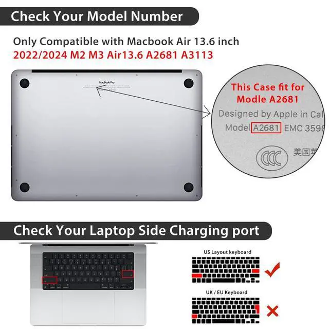 Release (model: A3240 A3113 A2681 - MC6T4LL/A, MW123LL/A, MW0W3LL/A, MW0Y3LL/A, MW103LL/A, MW0X3LL/A, MW133LL/A, MC6U4LL/A, MC6V4LL/A, MC6C4LL/A, MC654LL/A, MC6A4LL/A, MRXV3LL/A, MRXQ3LL/A, MRXN3LL/A, MRXT3LL/A, MXCV3LL/A, MXCT3LL/A, MXCR3LL/A, MXCU3LL/A, MLXW3LL/A, MLXX3LL/A, MLXY3LL/A, MLY03LL/A, MLY13LL/A, MLY23LL/A, MLY33LL/A, MLY43LL/A). Case NOT FitThis case is NOT for MacBook Air 13 inch Released Before 2022. (