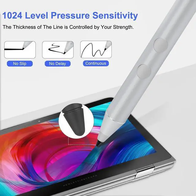 Stylus Pen for HP Envy X360 Pavilion X360 Specter X360 Spectre X2 Envy X2 Rechargeable MPP 1.51 Tilt Active Pen with 1024 Pressure Sensitivity, Palm Rejection, Magnetic Attachment Function, Silver