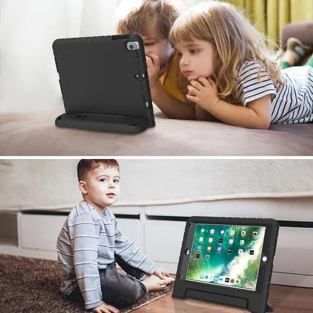 Give your iPad 9.7 inch a fully protection. ^^ Case is made from high-quality, EVA foam material with rugged surface for a firm grip. Soft and Shockproof~ ^^ Fun driven convertible stand case can change into a handle for easy handling and carrying around from school to home. Also can be folded back to serve as the base to become a stand.