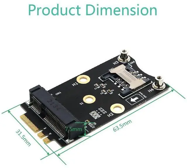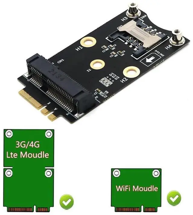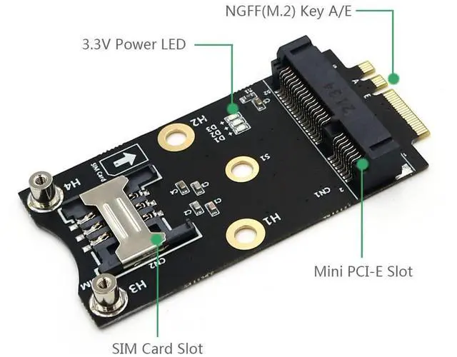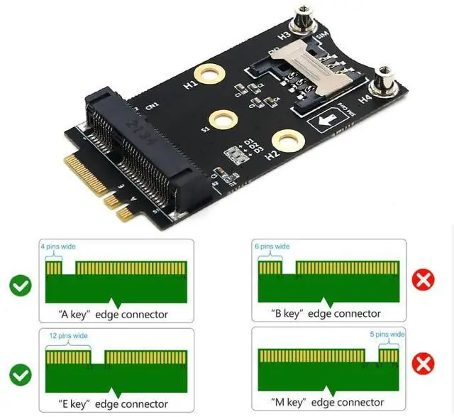 SlotProduct features: 1. Supports PCI-E bus type minicard such2. The adapter is designed for desktop/Embedded system that converts Mini-Card to M. 2 (NGFF) Key A/E interface3. Easy installation & no driver required, but make sure you have installed the software drivers for your mini card. 4. Support SIM 6pin/8pin card connector. 5. No additional power required6 Supports Win10/8/7/2000, Linux & iMAC etc7.