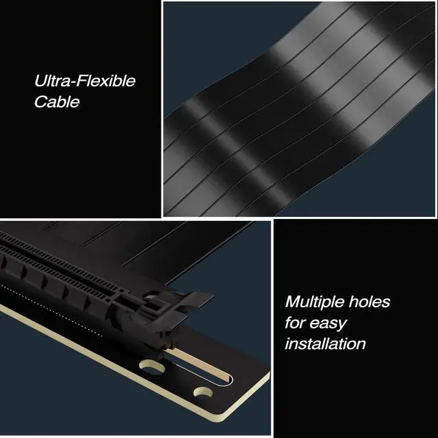 Connector Design: With a 20cm cable length and a 90 female PCIe connector, this PCIe extender minimizes cable stress and allows for easy installation of your GPU in compatible cases. ^^ Slim, Flat, and