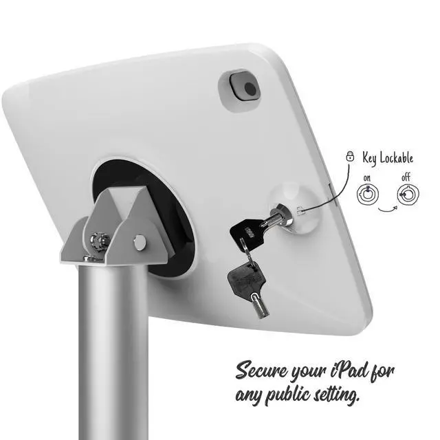 ^^ Key Lockable and Easy Installation. Anti-theft with key locked on the rear panel of the floor stand. Worry free for iPad stealing. Easy installation and very friendly for people who need to take out the iPad every day. ^^ Rotatable and Flexible. The strong metal hinge of the tablet floor stand offers 120-degree rotation. Find your ideal displaying angle. ^^ Cable Management. Keep the major part of cable hidden, tidy up the space and lower down the trip hazards. ^^ Compatible model 2021 iPad 9th