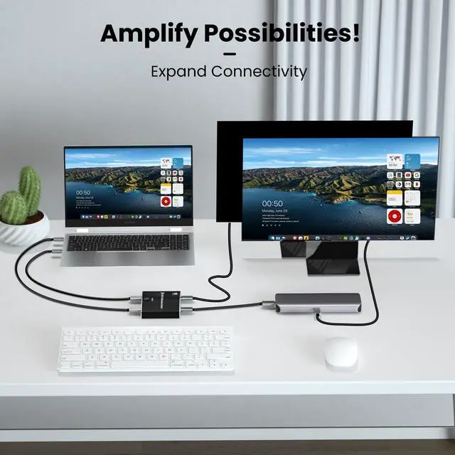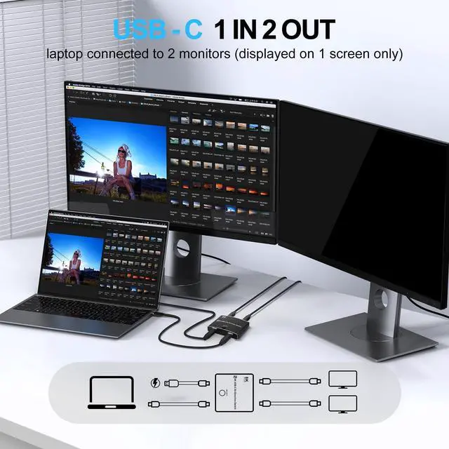 [Bidirectional USB C KVM Switch 2 Devices Share 1 Display or Vice Versa] This USB C KVM switch supports two input devices (with Thunderbolt 3/4 ports) sharing one display, or one input device switching between two USB C displays (only one active at a time). Compatible with laptops, tablets, smartphones, and handheld gaming consoles. Supports plug-and-play on Windows, macOS, Linux, iOS, Android, and Chrome OSno drivers required. ^^ [Detachable USB C Design + 3x 40Gbps Cables Included] Unlike traditional switches, this USB C switch features detachable cable designno fixed cords, giving you flexibility in setup.