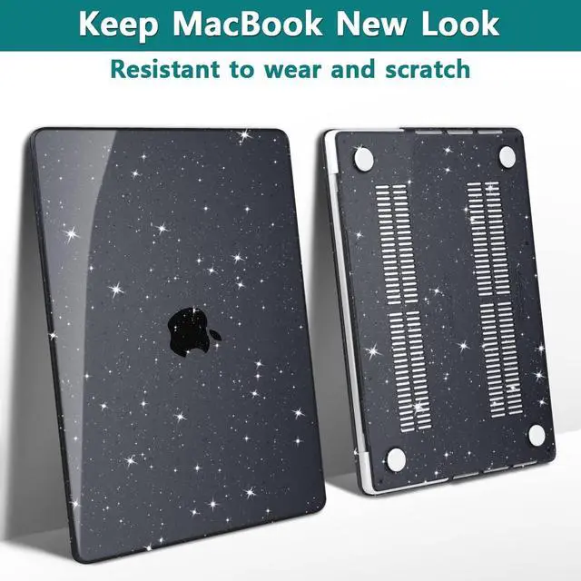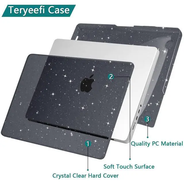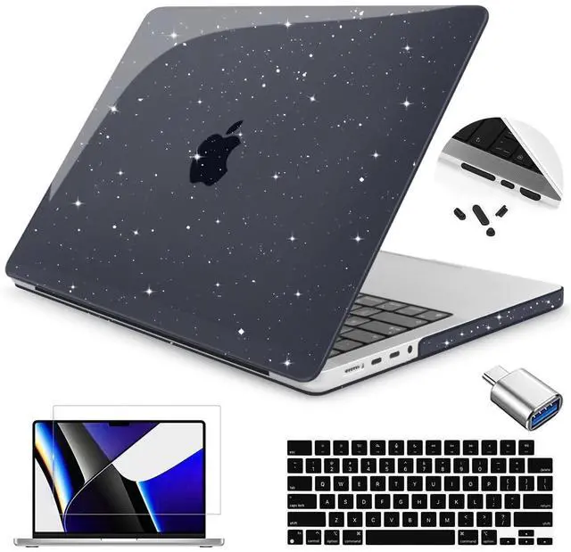 Teryeefi for MacBook Pro 14 Inch Case M5 M4 M3 M2 M1 2025 2024 2023 2021 Model A3434 A2918 A2992 A2779 A2442 fits Touch ID, Glitter Slim Hard Shell Case with Keyboard Skin & OTG Adapter, Sparkly Black