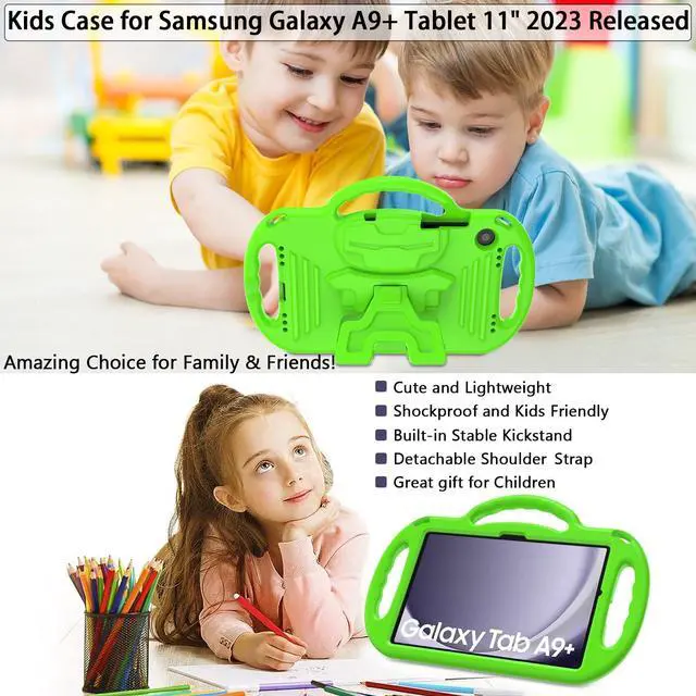 Perfect CompatibilityONLY for 2023 Release Samsung Galaxy Tab A9 Plus 11 Inch (SM-X210/ X216/ X218). NOT fit for ANY other models. (Note - Be sure to check your model number in the tablet settings before purchase). ^^ Cute DesignGalaxy tab a9 plus case for kids, designed with unique robot kickstand, prop up the stand anytime needed, start hands-free viewing in a comfy angle. Plus come in a series of enjoyable vibrant colors, fun and functional, amazing gift for children. ^^ Shoulder Strap & Built-in HandlesGalaxy tab a9 plus case comes with detachable shoulder strap and handles-all-around, easy to carry, travel-ready, super convenient while on the go.